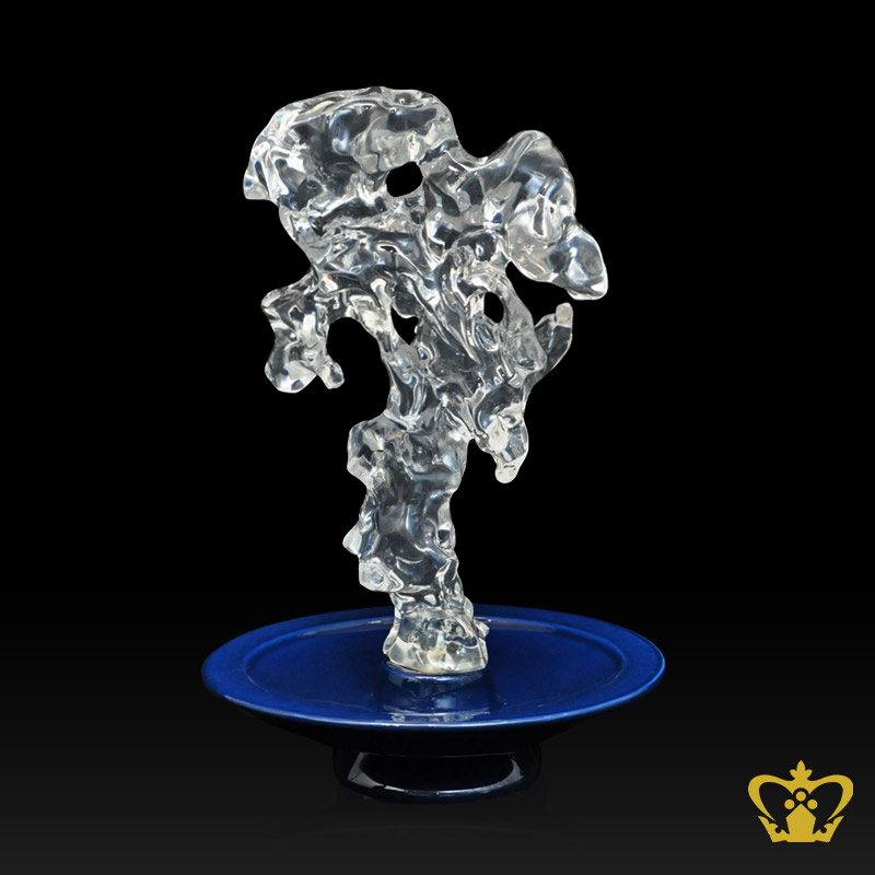 Resin ice rock trophy with blue ceramic plate base customized text logo